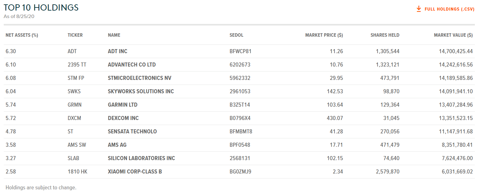 | 추종 지수 | Indxx Global Internet of Things Thematic Index |