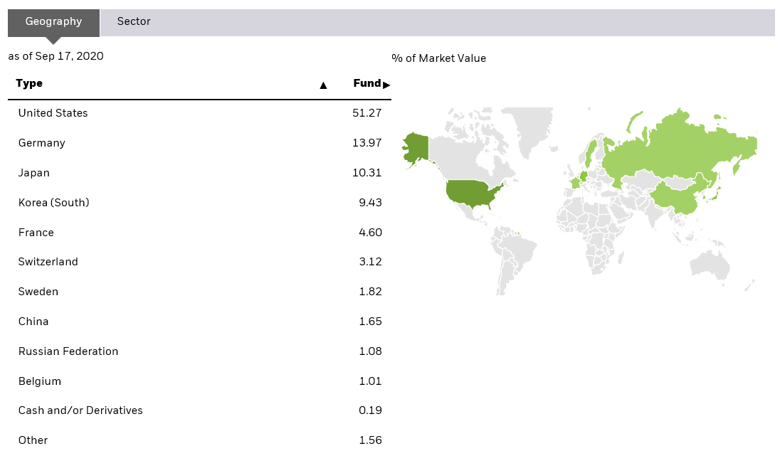 iShares 홈페이지에서는 IDRV가 다음의 특징을 가진다고 소개하고 있습니다.