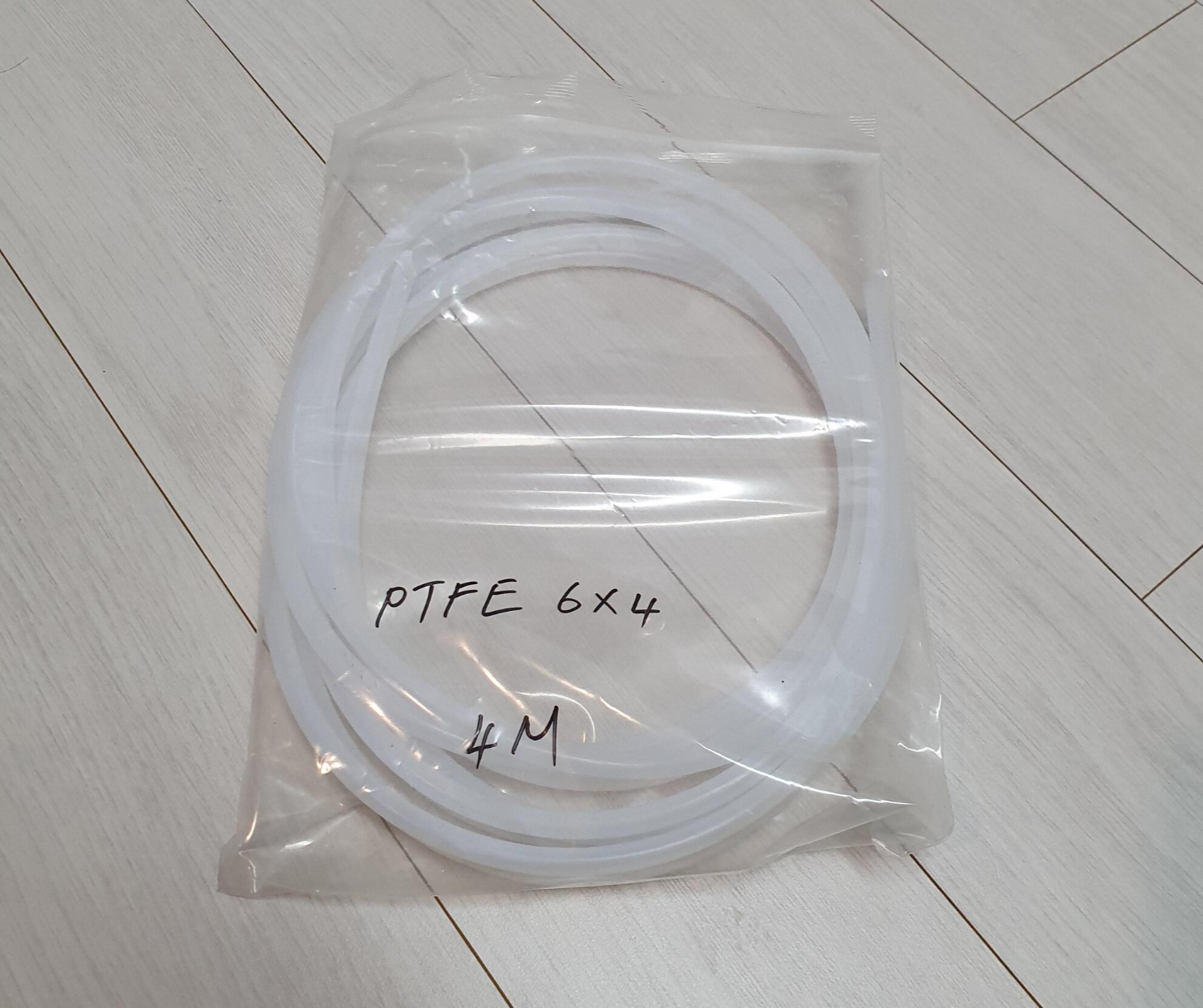 6X4는 외경이 6mm, 내경이 4mm라는 의미입니다. 인터넷에서 테프론튜브 또는 PTFE로 검색하면 쉽게 찾을 수 있으며 미터당 1,000원 이하로 저렴하게 팔고 있습니다.