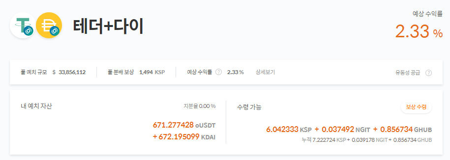 그리고 또 하나 다행으로 생각하는 것은 스테이블 코인끼리 페어로 묶어 예치하였기 때문에, 비영구적 손실 및 예치 원금의 손실이 없었다는 점입니다.
