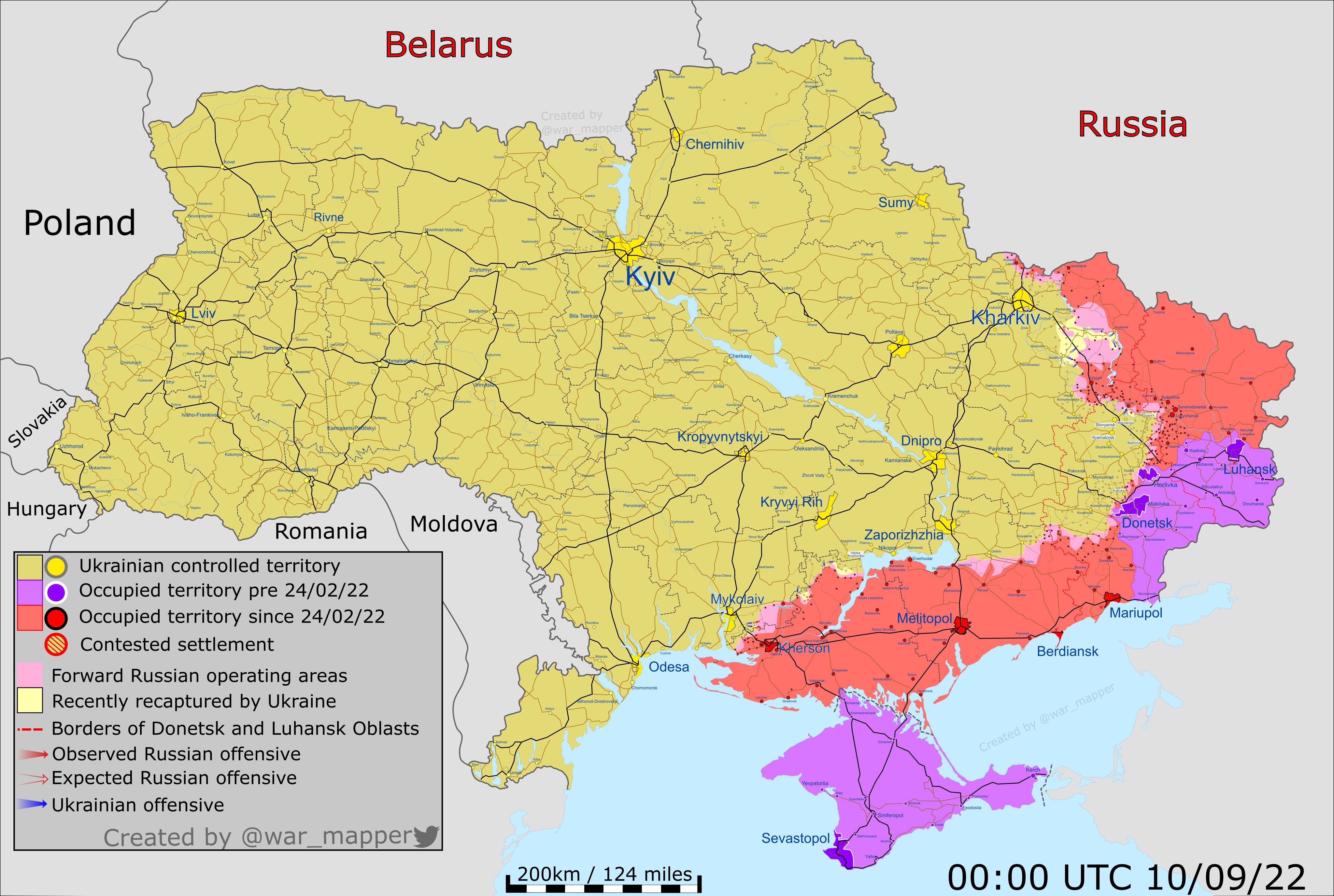 이후 해외 외신 보도를 찾아보면 우크라이나 군은 쿠퍈스크(Kupiansk)를 탈환한 이후, 이지움(Izyum)까지 점령하였고, 러시아 군은 이지움에서 항복하여 루한스크 주로 철수한 것으로 보입니다.