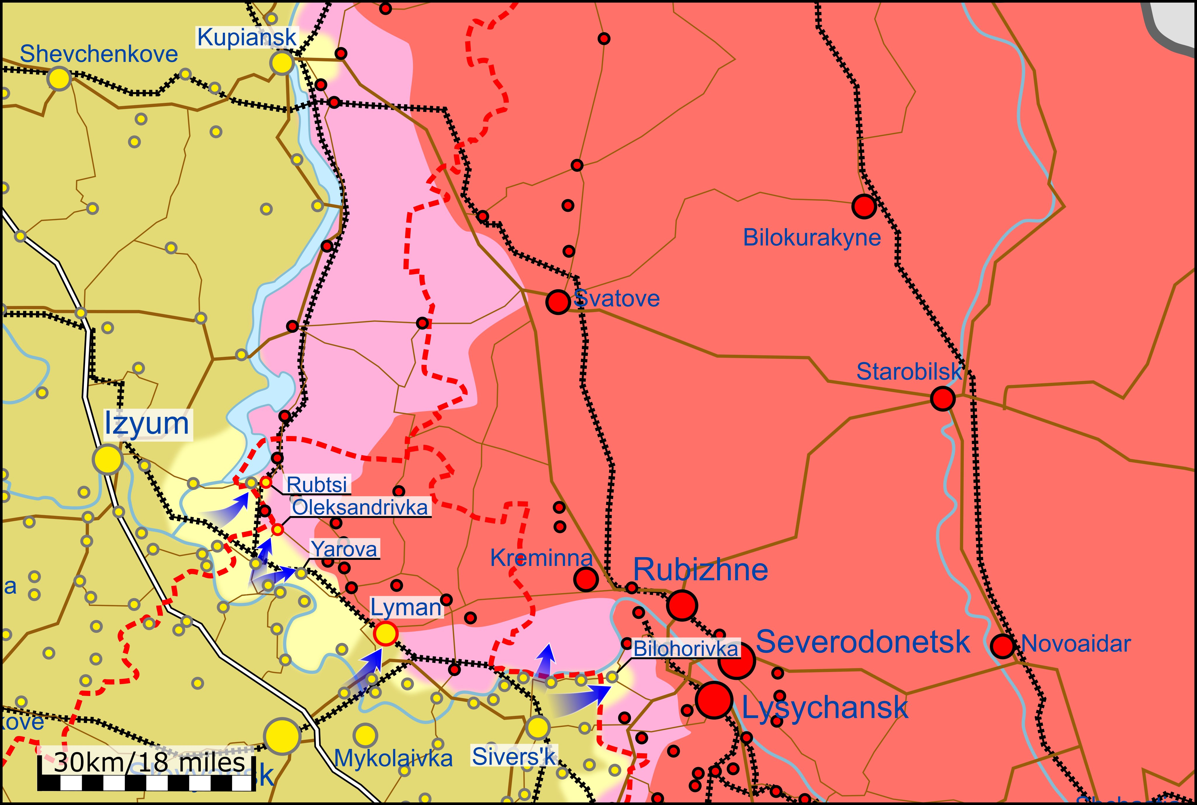 * 9월 20일, 우크라이나 군은 리만 주변 지역에서 진전이 있었으며, 야로바(Yarova)를 탈환함. (트위터 @War_Mapper)