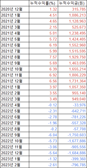 | 2023년 3월 연금저축펀드 수익률 현황 (운용 867일째) (1) | 2023.03.30 |