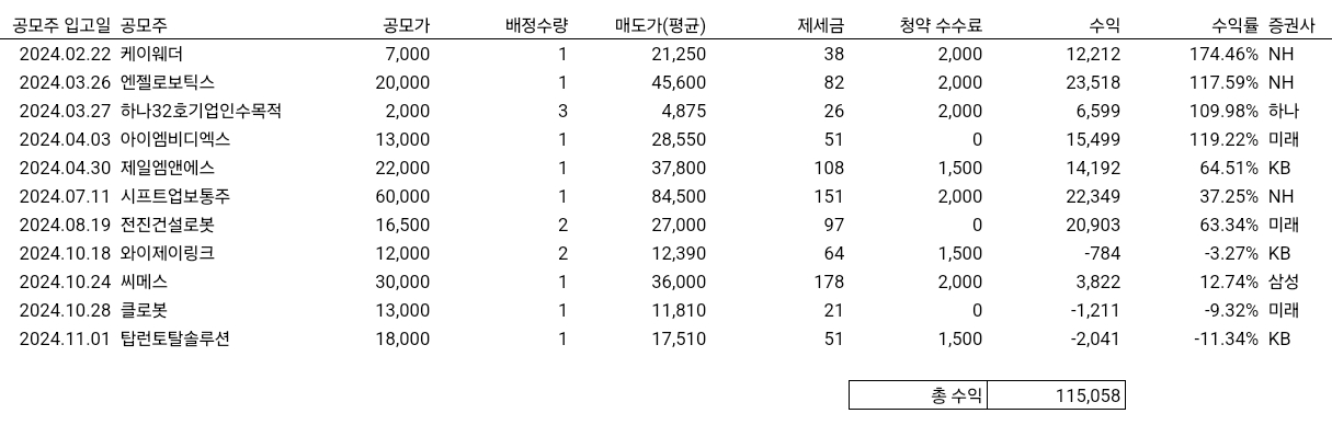 올 해가 아직 두 달 정도 남았지만, 2024년 공모주 청약 결과를 미리 정리해보았습니다.