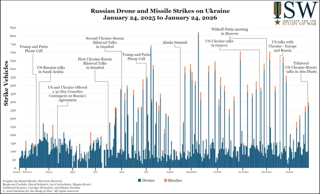 - 외교적 협상과 러시아의 이중성: 미국·우크라이나·러시아 대표단이 아부다비에서 3자 회담을 진행했으나, 러시아는 '앵커리지 공식' 등 자신들에게 유리한 조건을 내세우며 우크라이나의 양보를 압박하고 책임을 전가하는 태도를 보였습니다.