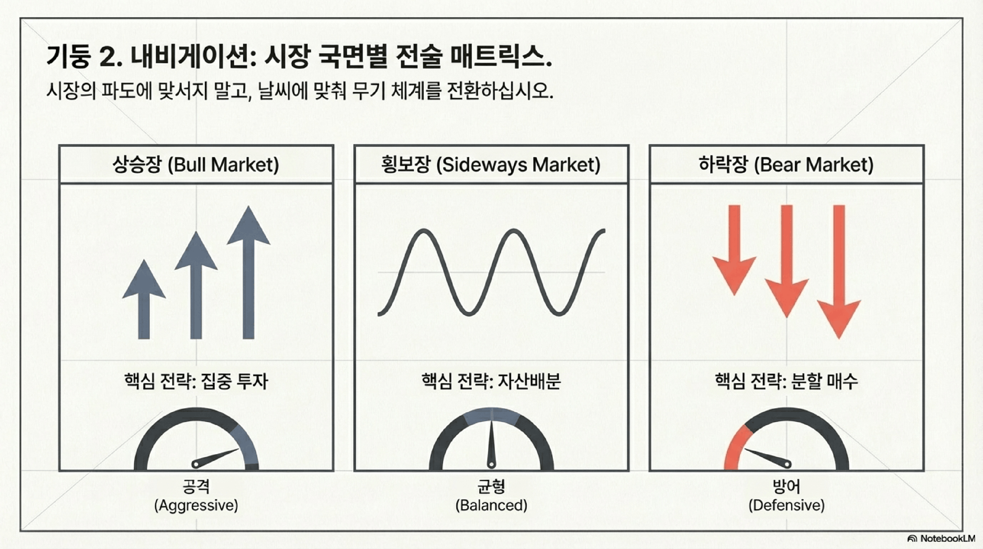 3. 상승장에서는 집중 투자, 횡보장에서는 자산배분, 하락장에서는 분할 매수를 기본 전략으로